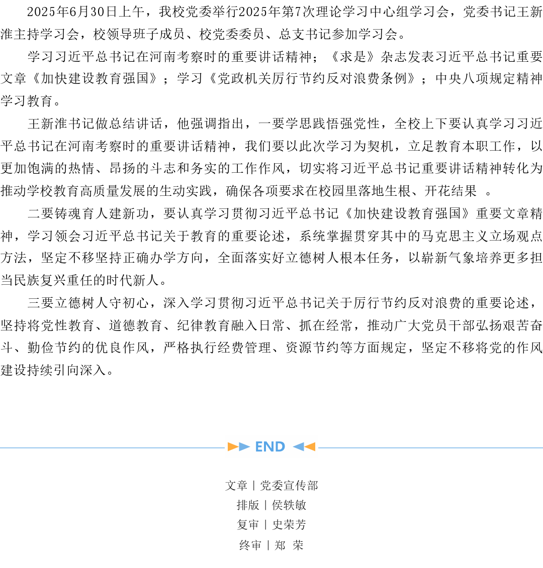 我校召开理论学习中心组2025年第7次集体学习会