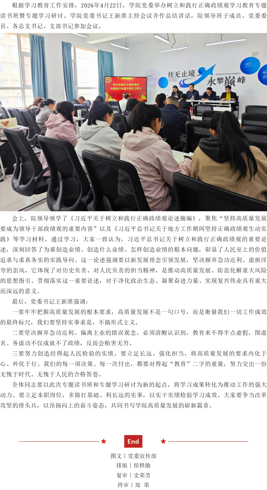 学院党委举办树立和践行正确政绩观学习教育专题读书班暨专题学习研讨