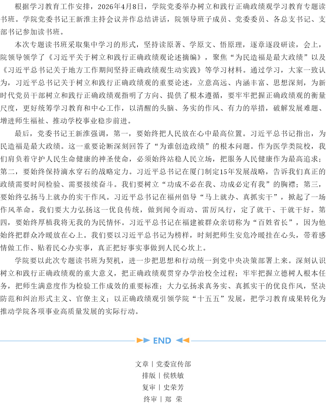 学院党委举办树立和践行正确政绩观学习教育专题读书班